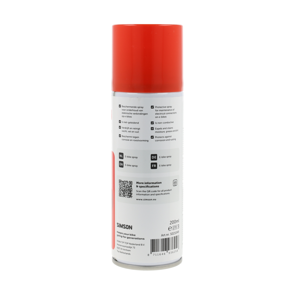 Essential protection for e-bike electronics. This spray is specially developed for plugs, relays, and battery connections. It is moisture-displacing and cleaning, preventing corrosion and oxidation. This ensures trouble-free contact between your battery, display, and motor.